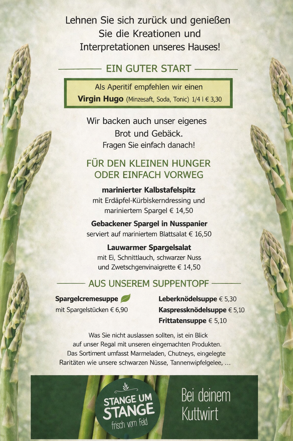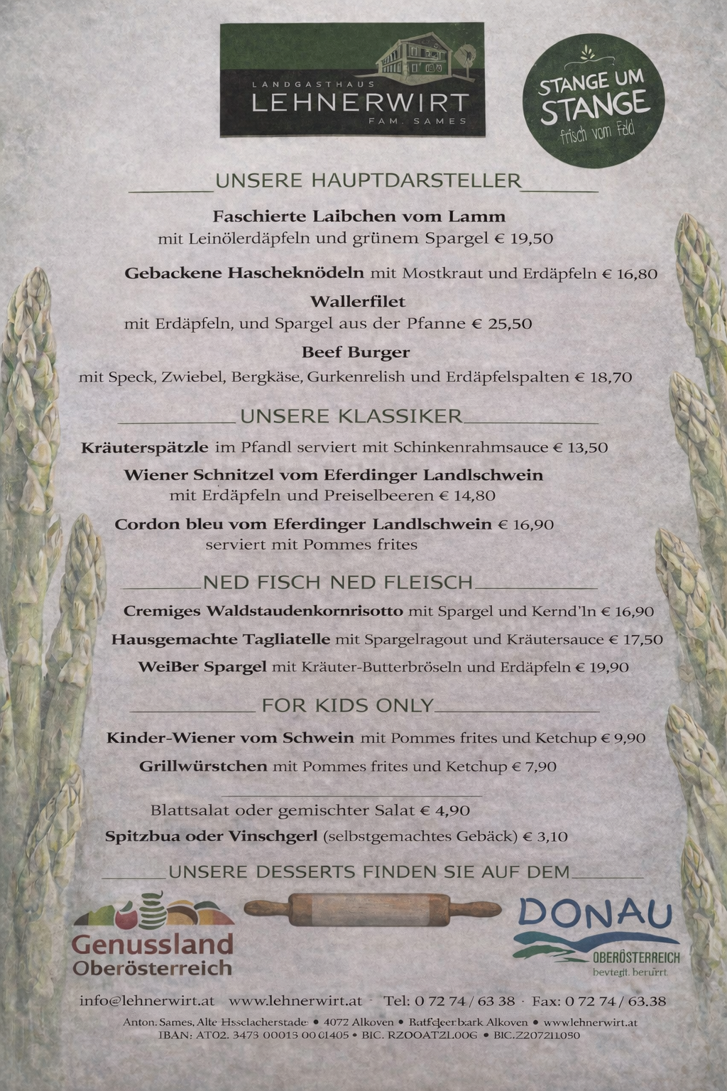 - Spargelspezialitäten mit Spargel aus dem Eferdinger Becken dürfen natürlich nicht fehlen.